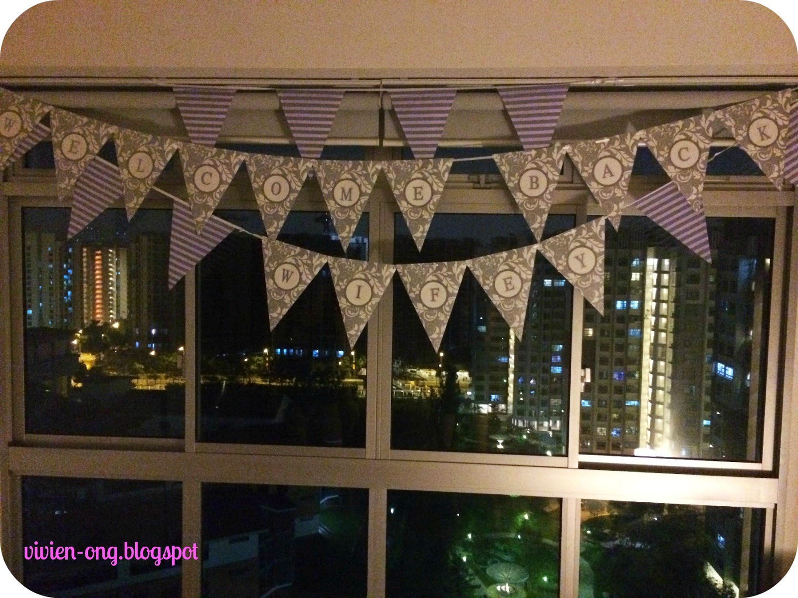 When I was back in our ulu home, I was greeted by 'W E L CO M E B A C K W I F E Y'.